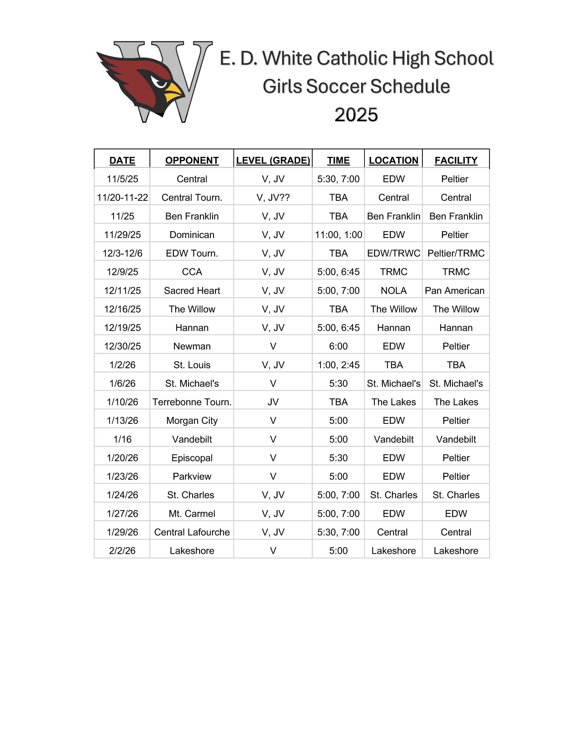 See details regarding the 2024 EDW Lady Cardinal Soccer Classic held on December 4-7, 2024